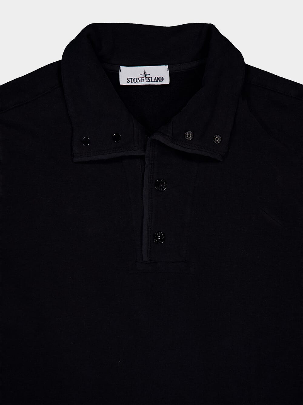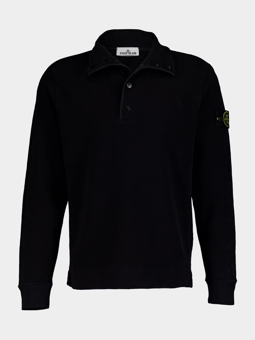 Stone Island button-up cotton blend sweatshirt—a versatile and contemporary addition to your wardrobe. Crafted in black stretch-cotton with jersey fleece, it combines comfort and style seamlessly. Adorned with the signature detachable Compass badge, it embodies the brand's iconic touch. The stand-up collar and short front button fastening offer a modern look, while the long sleeves with ribbed cuffs provide a tailored finish. Perfect for adding a sporty yet refined edge to your casual attire.