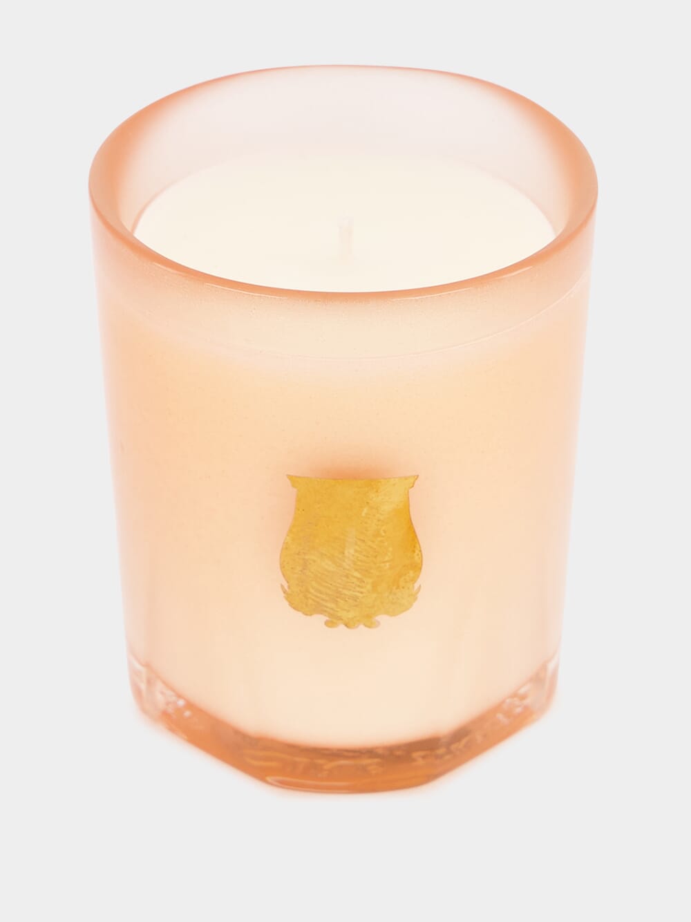 Candle Tuileries 70g from the Tuileries collection, inspired by a rare document at the French National Archives, the Gazette des Atours de la Reine. In this extraordinary homage, Countess Geneviève d’Ossun, lady-in-waiting to Marie Antoinette, meticulously cataloged fabric samples from the Queen's lavish wardrobe. Immerse your space in a fragrance crafted as a tribute to the rose, the perennial favorite flower of Marie Antoinette.
