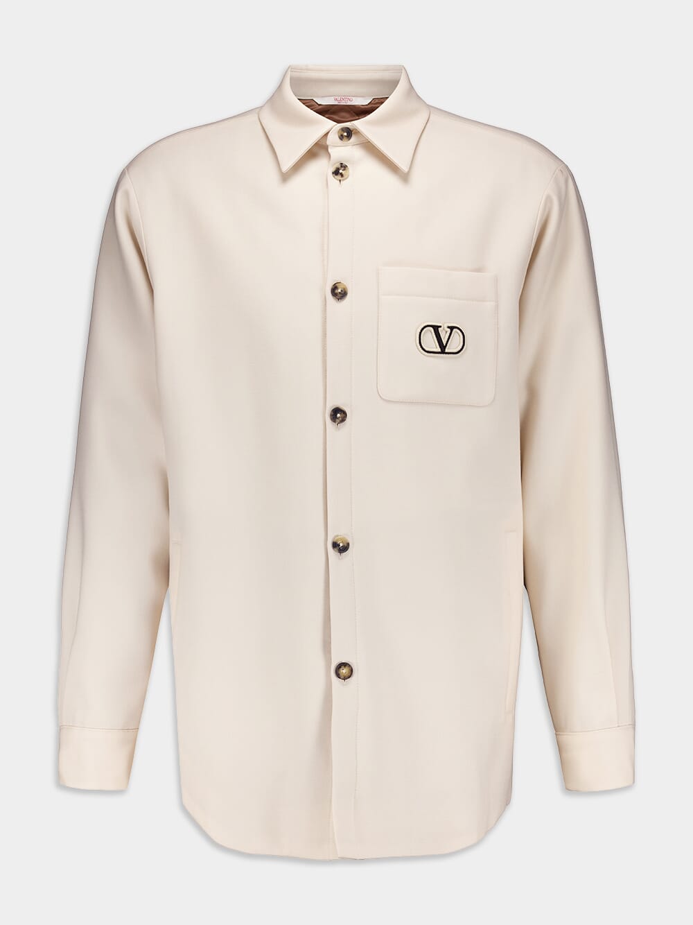 Vlogo Signature Embroidered Shirt Jacket - a perfect blend of style and comfort. Crafted from premium wool, this jacket features a classic point collar, ensuring a timeless look that never goes out of fashion. With its long sleeves and buttoned cuffs, it offers both warmth and versatility, making it an ideal choice for any season. The front button fastening provides effortless wear, while the iconic logo embroidery at the chest adds a touch of sophistication. Complete with a curved hem, this jacket perfectly combines elegance and modernity.