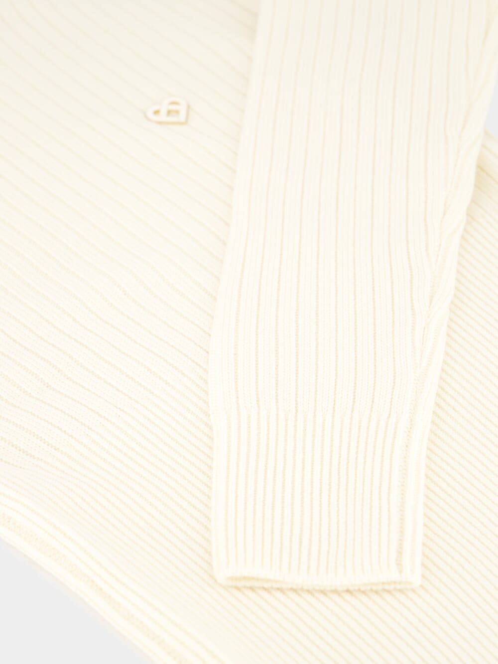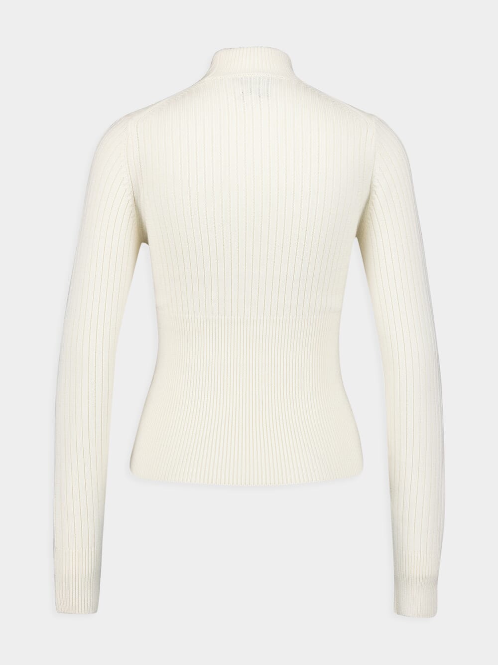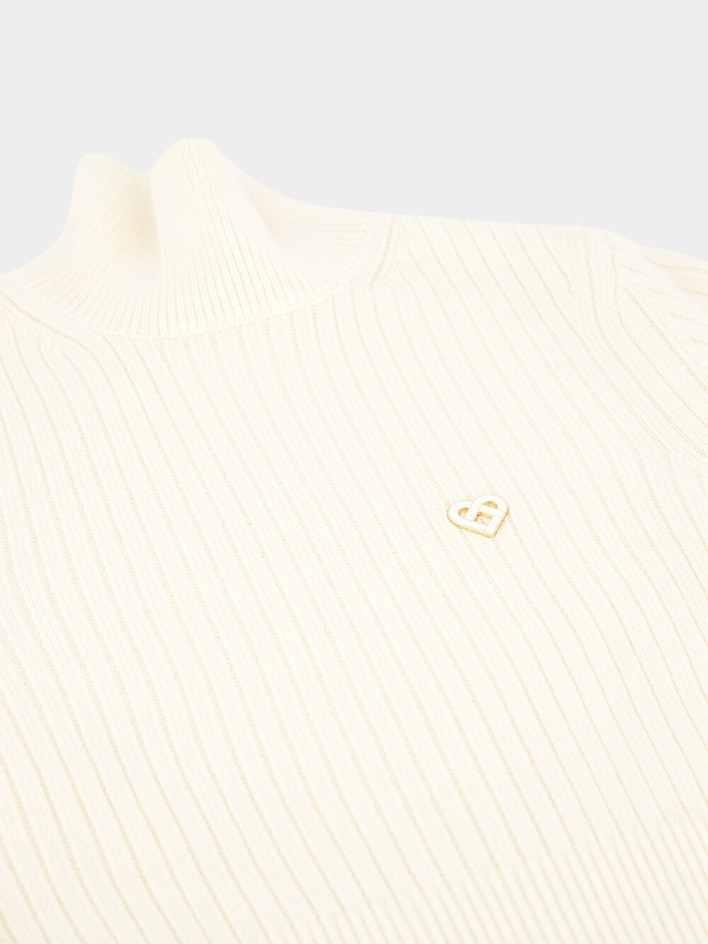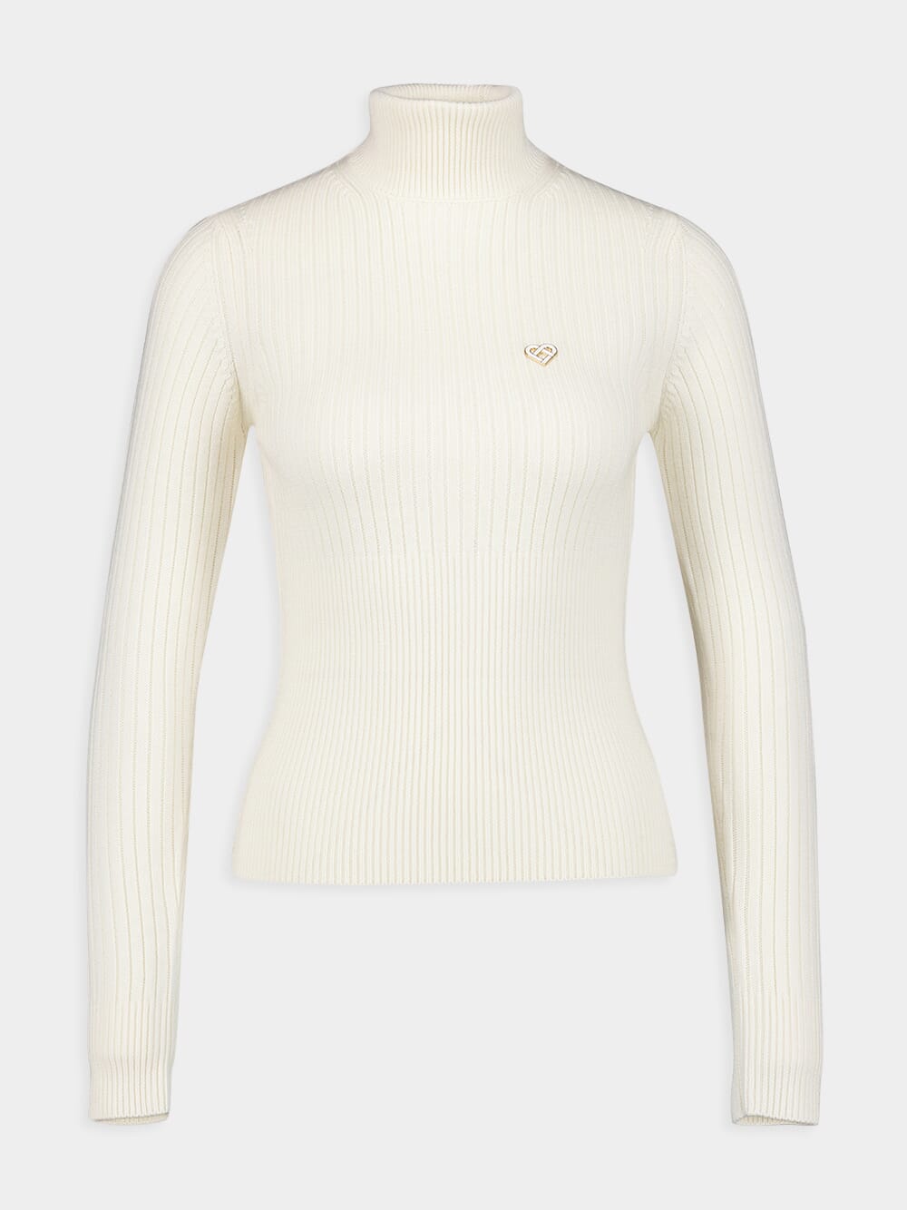 Knitted Wool Turtleneck Sweater. Crafted from premium wool, this sweater showcases a captivating printed front logo detail that adds a touch of personality. With a cozy turtleneck and long sleeves, it's both warm and stylish.